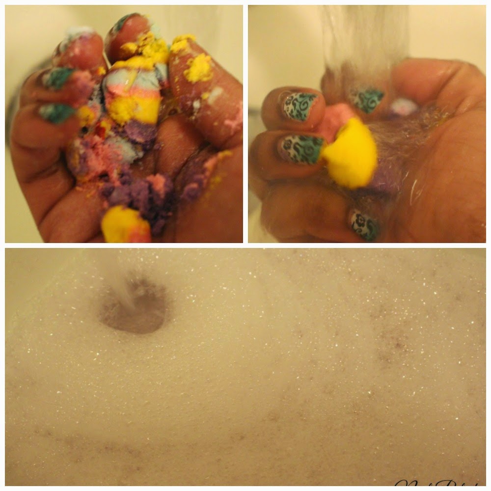 My bathroom doesn't have the best water pressure and I had an amazing amount of bubbles. This bubble bar smells divine, the smell wasn't an intense as some of Lush's items but the lavender and ylang ylang was still sweetly strong. I loved how it gave my water a light purple tint and there was shimmer! This bubble bar took me away to a far away place.