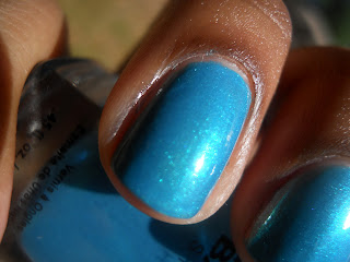 This polish is my now go to summer color, it's bright with a teal shimmer and application only took 2 coats and some top coat. This is such a fun shimmy blue it actually reminds me of ice pops, omg I can link it to the name it reminds me of a summer's breeze it's a refreshing color!