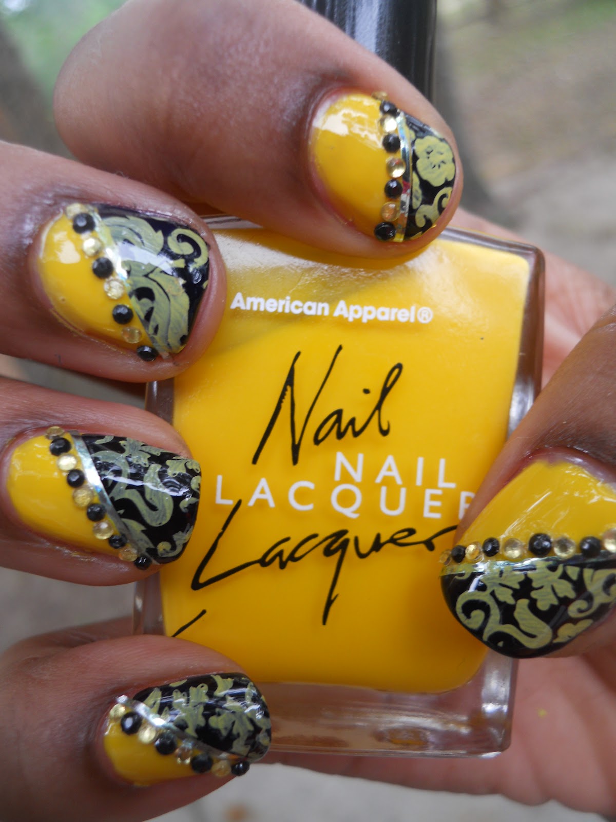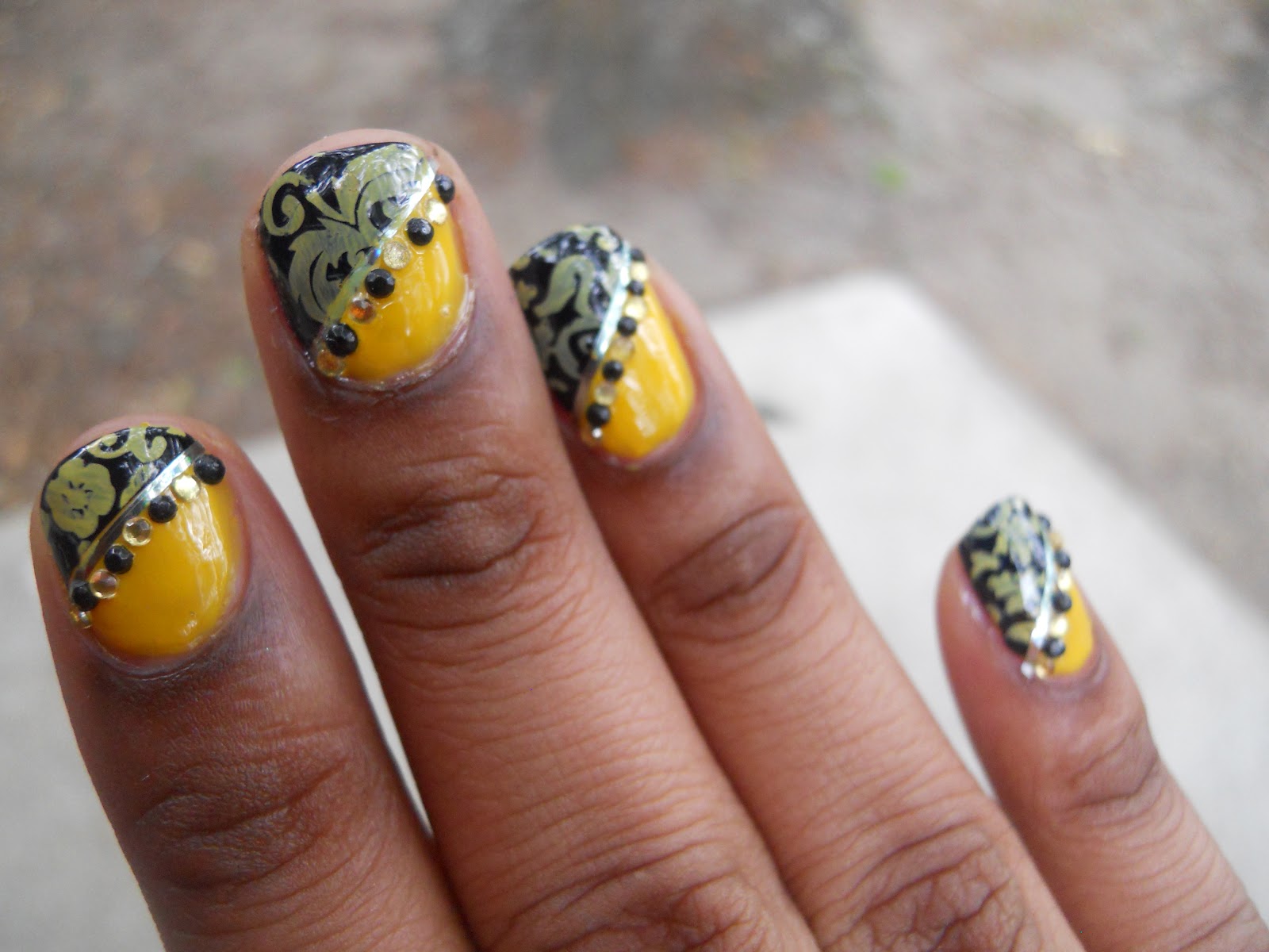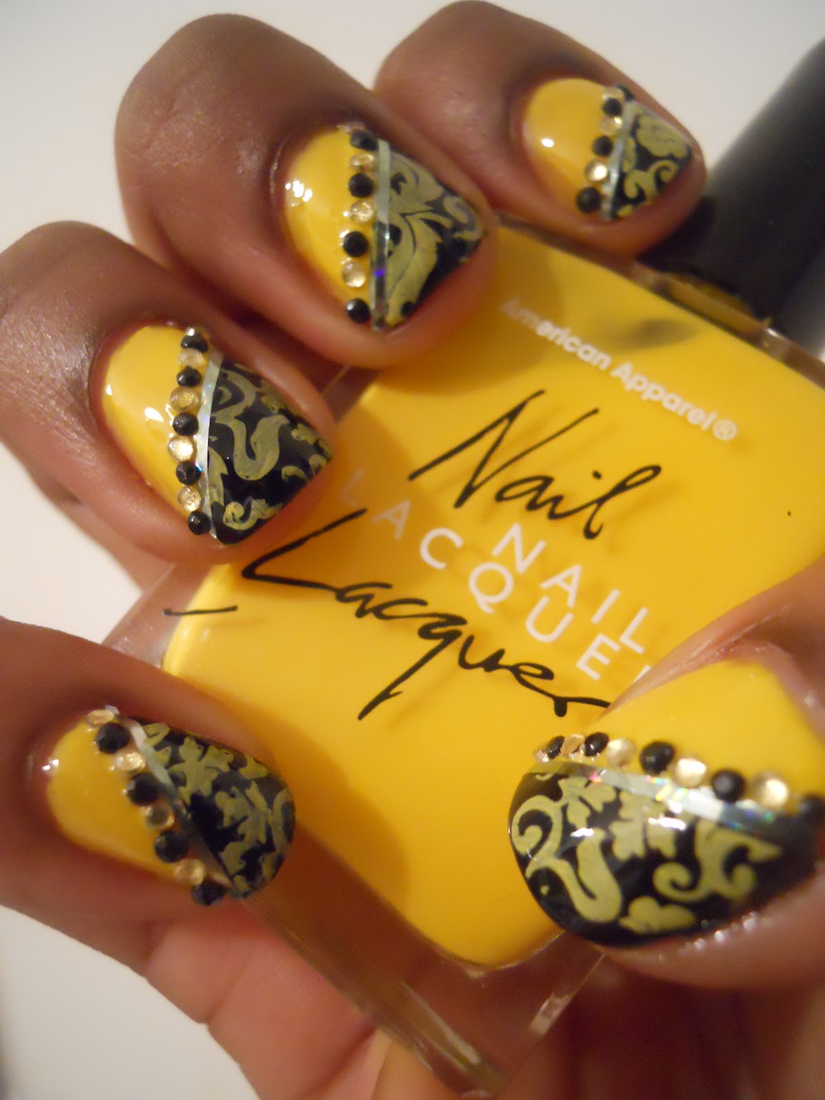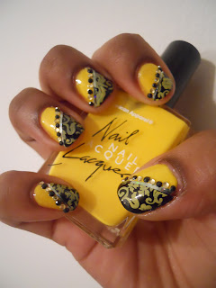 After that I stamped it with Red Angel plate 112 added a final top coat and added some rhinestones and way out the door... literally I had to do some shopping for an international swap I'm in. I got alot of compliments on it and people saying the normally don't wear yellow but they'd wear it like this. This design reminded me of wall paper that you would imagine is a romance novel when they say "Sir they are waiting in the yellow room" lol yes I love romance novels as much as I love nail polish lol. So when you see this design what do you think of?