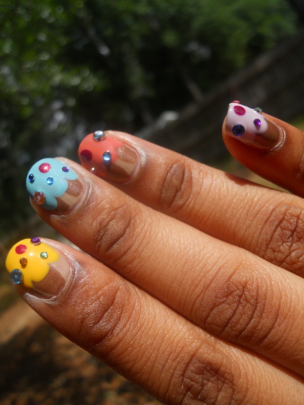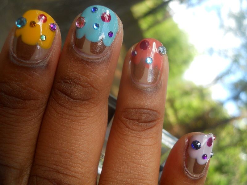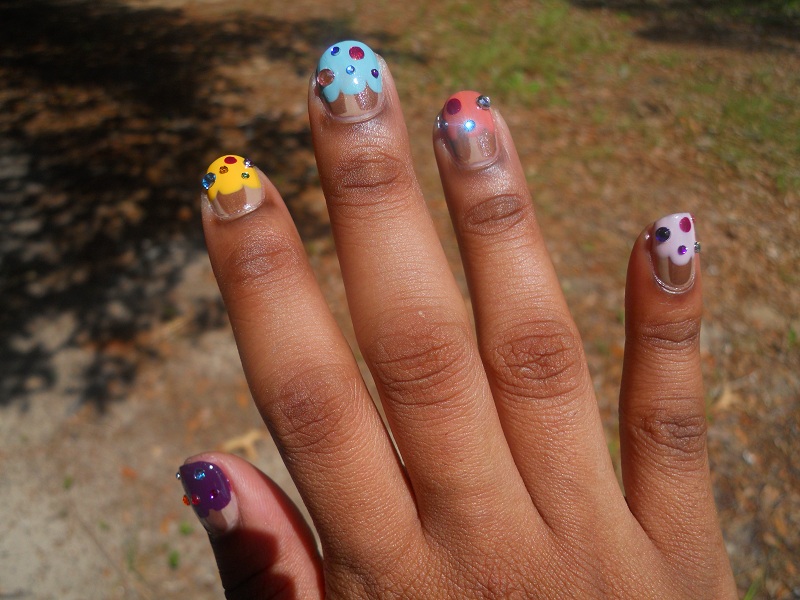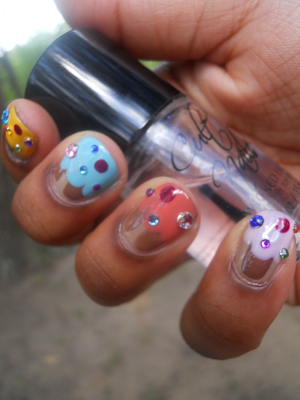Do these make you want some cupcakes? I really like how they turned out and they are just so fun. Have you tried cupcake nails yet? How did they turn out? I know I've been preaching to the choir but I love these rhinestones.