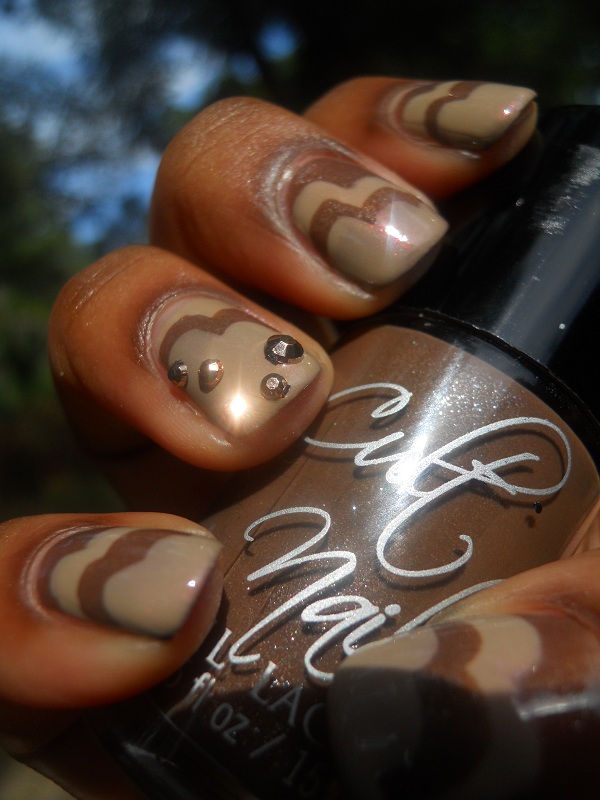 I used the Bronze Muli-sized rhinestones with Crusin' Nude and In a Trance.