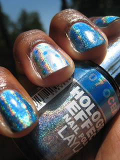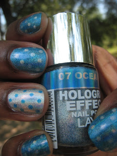 Hi Dolls I'm linking in this weeks Nail Files. So for todays NOTD I decided use some of my holo's so today I chose Layla's Hologram Effects 07- Ocean Rush and 01- Mercury and I used my handy dandy dotting tool. And here's my design...