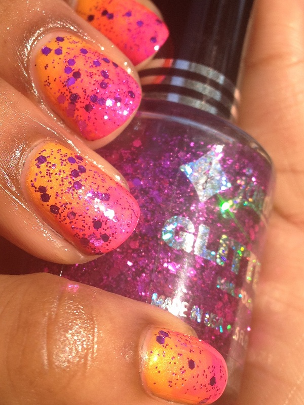 This has to be one of my favorite days of the challenge, I just love gradient nails they are just so easy and fun to do. And yes I have decided to do 31 days of the challenge might as well go all the way. So today I have 2 designs for you, I'm trying to say goodbye to summer and it's getting kind of hard. So for my first granient nails I used China Glaze Summer Neons, Orange you Hot, Love's A Beach and Beach Cruise-R and topped it with Jordana's Magenta Magic.