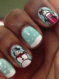 I'm cranky dolls so forgive me for being off today but something that made me smile were my snowman nails which I am late posting but here they are hope you enjoy them...