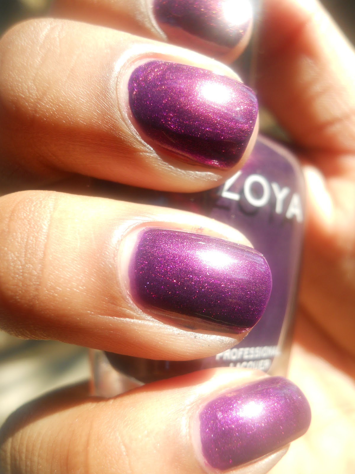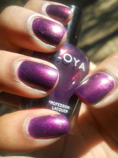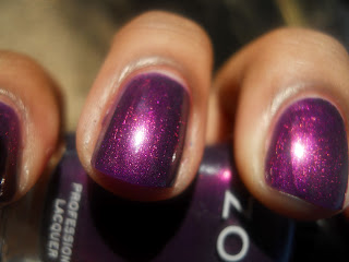 This is one of my favorite polishes, it's not the kind of plum you normally think of but it's gorgeous. In the bottle you can see little green shimmers but you don't really see it on your nail, but you just feel like there is a little something special in there that no one can really see. This is a perfect color for your toes.