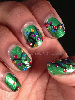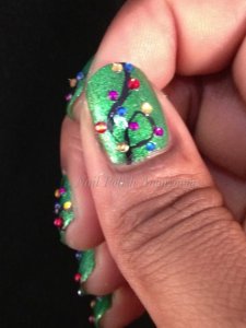 I love this polish! It's stellar! So I did a simple 2013 on my ring finer and on the middle finger I tried to make a sand clock to reperesnt the bringing in the new year and on the pinky and pointer fingers I did balls dropping and hanging. I have to really work on working with loose glitters, it might be easier to use if it weren't in a base( have to put that on my list of things to try this new year).