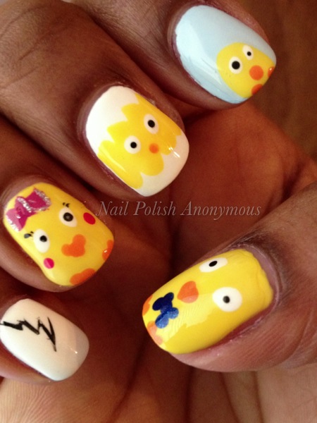 I have seen so many chicks in the past 24 hours it's crazy, granted most of them have been painted on children's faces and I'm beginning to think my next door neighbors got one too because I can hear it through the walls *sigh*. So here are the little chicks I came up with...