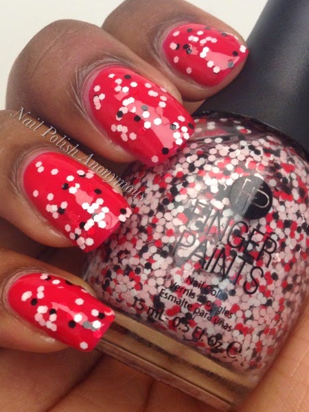 Ka-Pow! is a matte glitter full of white, black, red and pink glitter. This is my favorite only because I'm bias and love this combo because it reminds me of my high school colors red, black and white.
